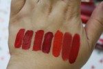 Top to bottom (L to R in swatch below): Wet n Wild – Red my mind, Mac Retro Matte– Feels so grand, Stila Stay All Day Liquid Lipstick– Beso, Revlon Ultra HD Matte– Passion, Stila Stay All Day Vinyl Gloss– Poppy Vinyl, Colour Pop Matte X– Love Life, Lime Crime – Red Velvet