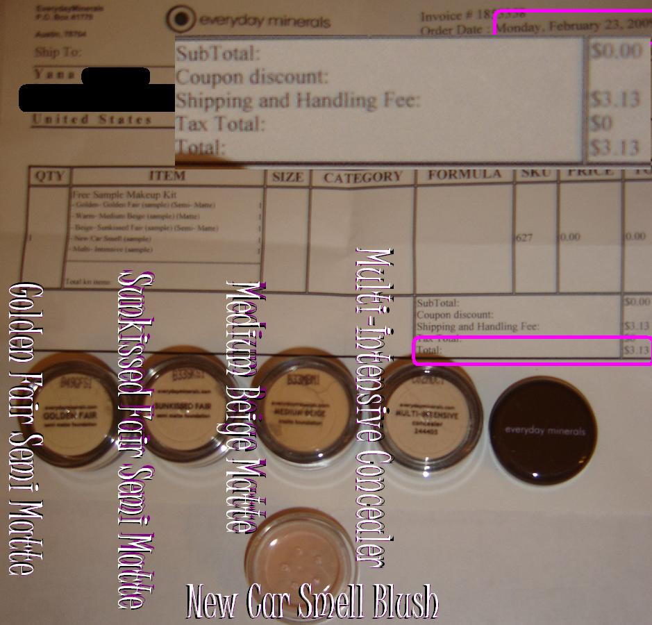 I paid $3.13 for S&H. The rest was all free. It also took only 5 days from order placement to arrive. Got 3 foundations, 1 concealer, and 1 blush. They come in sifter jars (love sifter jars). Review to come soon.